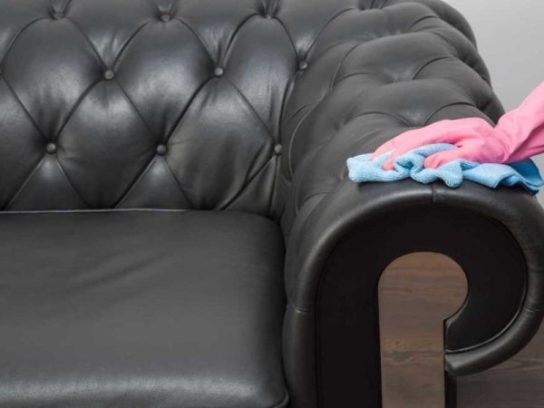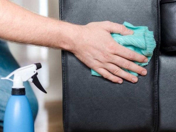 Dùng khăn mềm để để lau lên bề mặt da đối với các vết bẩn từ bụi, dấu vân tay, dấu chân (Nguồn: Cleanipedia) Đối với các vết bẩn cứng đầu, cần phải dùng đến các dung dịch vệ sinh ghế sofa có tính tẩy rửa mạnh (Nguồn: noithatkdt.vn)Cách làm sạch ghế sofa giả da