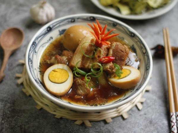 Những miếng thịt cắt khối với tỉ lệ mỡ và nạc cân bằng được kho tới khi chín mềm và tan ngay sau khi được đưa vào miệng, để lại hậu vị béo ngậy, đậm đà. Kết hợp cùng trứng kho giàu dinh dưỡng, có vị bùi bùi cũng khiến bạn khó có thể buông đũa. Thịt kho tàu có thể ăn cùng với bánh mì, bánh Tét, bánh màn thầu, xôi, nhưng lý tưởng nhất vẫn là kết hợp cơm trắng.