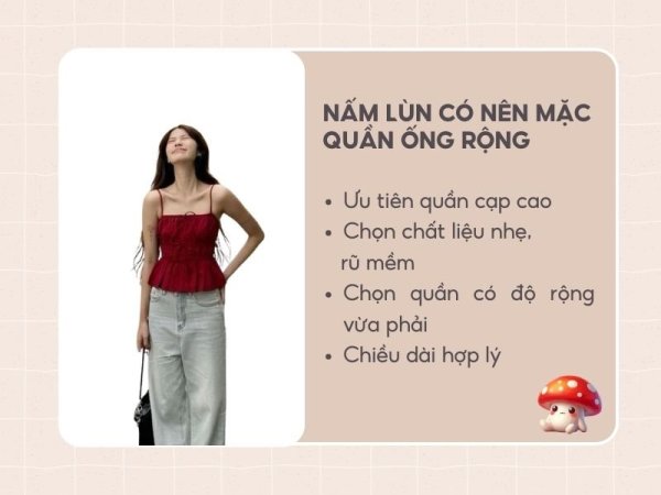 - Chọn quần có độ rộng vừa phải: Nên ưu tiên dáng quần ống suông hoặc ống rộng nhẹ, không quá thùng thình. Những chiếc quần palazzo siêu rộng có thể làm bạn “lọt thỏm” trong trang phục.