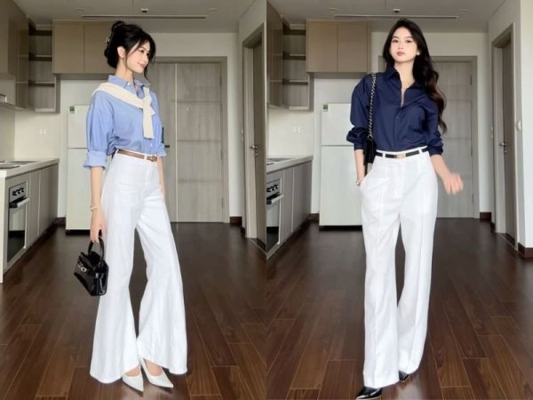 Một set đồ gồm áo sơ mi trắng tay phồng, quần ống rộng màu be và sandal đế xuồng là combo lý tưởng cho những buổi cà phê, họp nhóm hay đi du lịch. Nếu bạn yêu thích phong cách Hàn Quốc, hãy thử mix sơ mi kẻ sọc pastel cùng quần vải mềm ống rộng và sneaker trắng vừa trẻ trung, vừa cá tính.