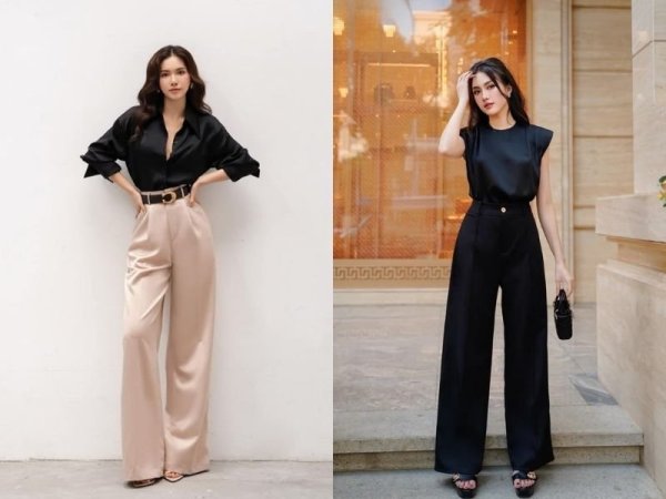 Cách mix quần ống rộng cho người lùn mà không bị nuốt dáng (Nguồn: Paradise/pinterest.com, Hỷ Lam/pinterest.com)Các shop bán quần áo nữ trendy, thời thượng