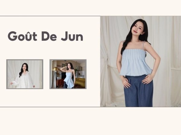 Goût De Jun là lựa chọn hoàn hảo cho những ai yêu phong cách nữ tính nhưng vẫn muốn giữ chút gì đó “cool” và riêng biệt. Các thiết kế tại đây thường tập trung vào chi tiết cut-out tinh tế, phối màu đối lập hoặc layer thông minh. Quần ống rộng, váy xếp ly, áo hai dây cổ yếm hay cardigan dáng ngắn là những item “must-have” trong bộ sưu tập của Goût De Jun.