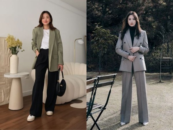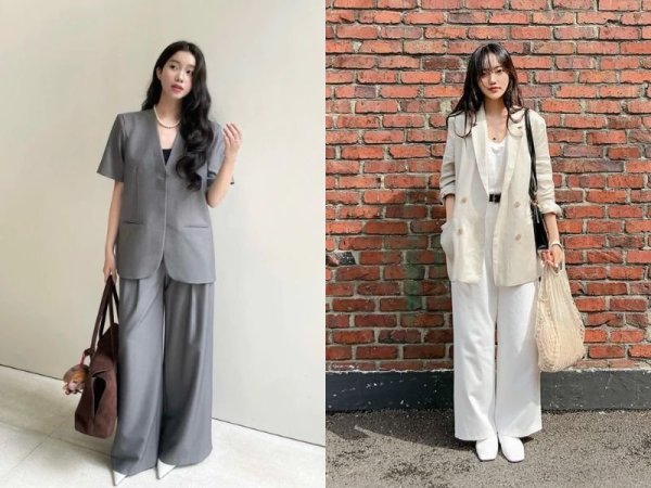 Bạn có thể chọn blazer trơn màu hoặc họa tiết sọc dọc, dáng lửng ngang eo để không làm cơ thể bị “chia khúc”. Kết hợp bên trong là áo thun trơn, áo 2 dây hoặc áo ôm body tùy theo sở thích. Quần ống rộng cạp cao kèm thắt lưng bản nhỏ sẽ giúp bạn giữ được phần eo rõ nét, tránh bị “nuốt dáng”.