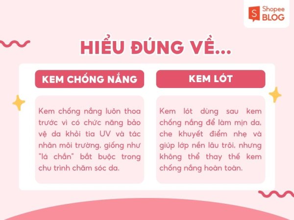 Giải mã thắc mắc “nên đánh kem lót trước hay kem chống nắng trước” (Nguồn: Shopee Blog)Hiểu đúng về kem lót và kem chống nắng