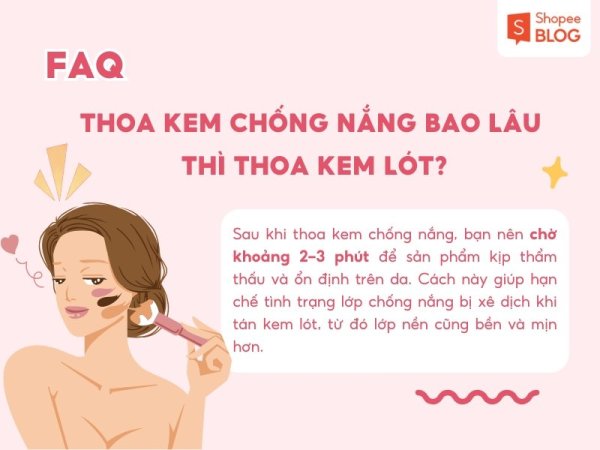 Bạn nên chờ khoảng 2–3 phút sau khi thoa kem chống nắng để sản phẩm có thời gian ổn định trên da, hạn chế việc bị xê dịch khi tán kem lót.