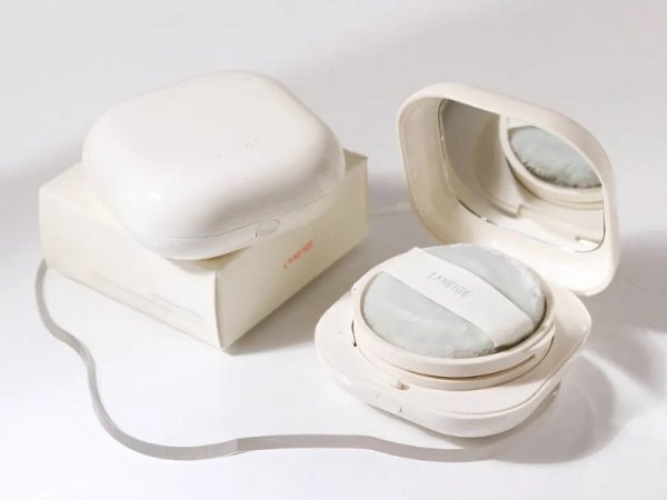 - Bao bì: Thiết kế hộp vuông bo góc với tông trắng ngà tối giản. Bên trong có lưới lọc phấn, gương soi và bông phấn tiện lợi.