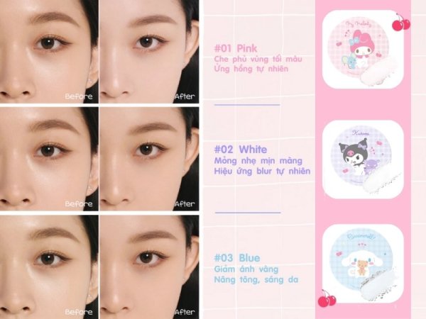 - 01 Pink (My Melody): Che phủ vùng tối màu, tạo hiệu ứng hồng hào tự nhiên.
