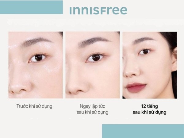 | INNISFREE No Sebum | Mịn lì, có flashback nhẹ. | Tốt, khoảng 4 – 5 tiếng. | Vừa phải, làm mờ lỗ chân lông nhẹ. |