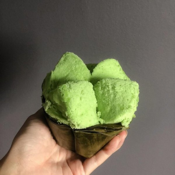 Điểm ấn tượng của bánh thuẫn là chín, bánh nở ra, tạo thành cánh hoa mai vàng ươm, có độ xốp mềm nhẹ, cảm giác như tan được trong miệng khiến tâm tình cũng được thư thái hơn.