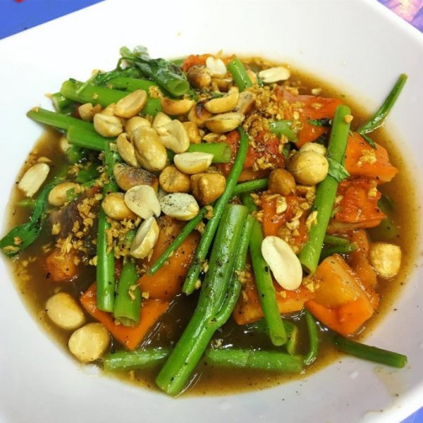 - Phá lấu xào me, rau muống: một số người sẽ thích thêm chút vị chua của me để tạo ra vị phá lấu độc đáo, mới lạ hơn so với hương vị truyền thống.
