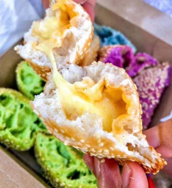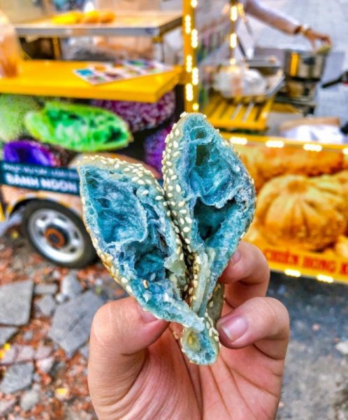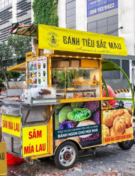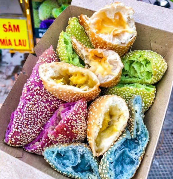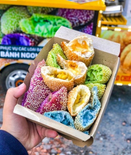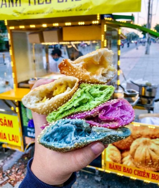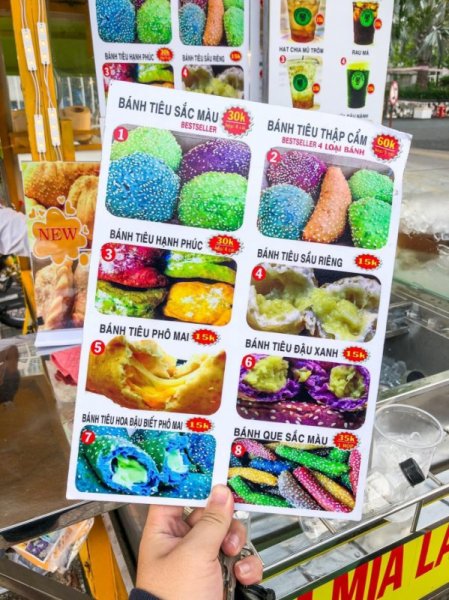 Xe bánh tiêu sắc màu này xuất hiện tại quận 8, TP.HCM. Sau đó, xe bánh nhanh chóng chiếm được cảm tình của thực khách nhờ sắc màu bắt mắt so với bánh tiêu thông thường. Bánh tiêu sắc màu gồm 4 loại màu khác nhau, làm từ màu thực vật: đậu biếc, lá cẩm, lá dứa, sầu riêng.
