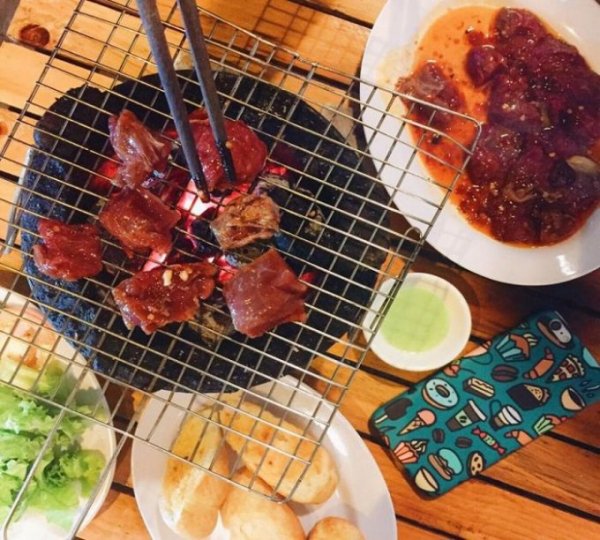 Đợi than nóng đỏ, bạn có thể tự tay nướng thịt bò. Sau 10 phút, thịt bò chín mềm, chuyển màu đỏ bắt mắt thì đã dùng được. Thịt bò nướng lạc cảnh Nha Trang chấm với nước sốt cay, ăn kèm với bánh tráng, bánh mì hoặc rau sống tươi xanh sẽ vô cùng đưa miệng, là một trải nghiệm ẩm thực thú vị trong chuyến du lịch đến với thành phố biển.