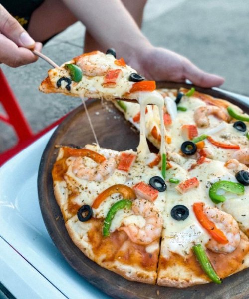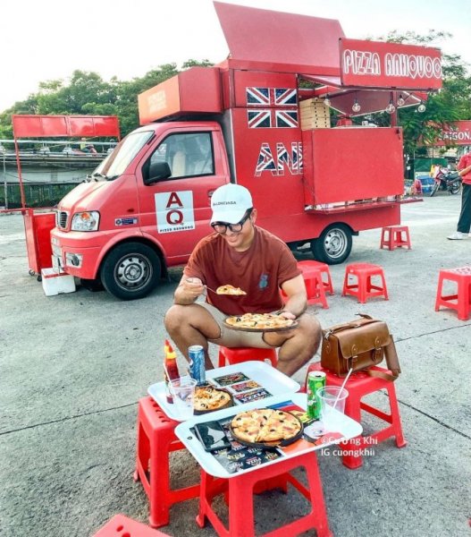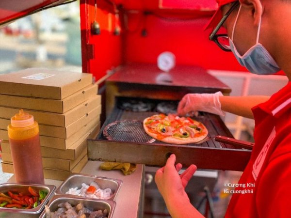 Không phải là những chỗ ngồi sang trọng trong nhà hàng, bạn có thể thoả thích thưởng thức pizza ngay bên đường với mức giá vô cùng yêu thương nhưng chất lượng cực kỳ ổn áp. Tuy chỉ là một chiếc xe ô tô nhỏ nhưng trong đó chứa đựng cả một kho tàng nguyên liệu và dụng cụ, để khi những chiếc pizza đến tay khách hàng, nó vẫn giữ được trọn vị hoàn hảo nhất.