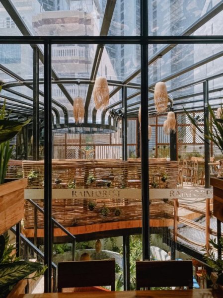 Y như tên gọi, Rainforest tựa như một rừng mưa nhiệt đới ngay tại Nha Trang. Bên trong quán chính là 1 thác nước nhân tạo xối thẳng xuống từ giếng trời, nhìn cứ như là nước từ trên trời đổ xuống vậy. Mới thoạt đầu nhìn cứ ngỡ như phiên bản thu nhỏ của thác nước sân bay nổi tiếng Changi bên Singapore.