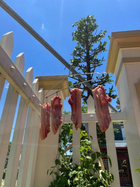 Để có thể làm được món thịt một nắng chuẩn vị, ban đầu thịt sẽ được ướp gia vị ưa thích, sau đó phơi trong nắng to tầm 3-4 ngày, sau đó có thể mang đi sơ chế và sử dụng được.