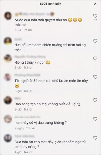 Tuy nhiên, ngay khi vừa xuất hiện, món ăn lạ miệng này đã vấp phải phản ứng trái chiều của cư dân mạng. Nhiều người cho rằng sẽ thử cách ăn mới mẻ này, nhưng nhiều người ngay lập tức chê bai, để lại bình luận rằng "nhìn thôi đã thấy đau bụng". Bởi lẽ xưa nay cách ăn truyền thống với dưa hấu là không xuất hiện dầu mỡ và các loại dầu hào tạo vị mặn, thế nên họ cho rằng "không hợp".