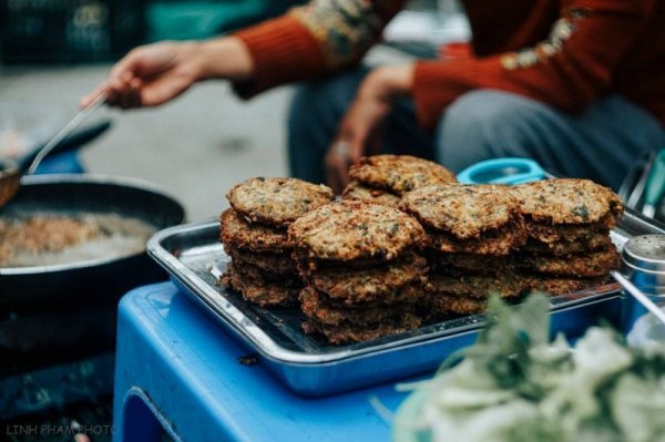 Chả rươi Hà Nội phải đổ thành bánh không quá dày cũng không quá mỏng, chừng bằng chiều dày ngón tay thiếu nữ là vừa xinh. Ảnh: @phuongkhi.