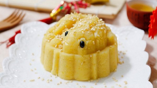 Món ăn có vị béo, mềm, ngọt vừa, thoảng hương gừng và mè rắc bề mặt.