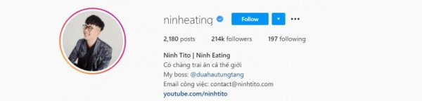 Là một trong những food blgger đời đầu, Ninh Tito sở hữu kênh instagram gần 215 nghìn lượt theo dõi với những bài đánh giá kĩ lưỡng, khách quan với đa dạng điểm ăn uống cùng loạt hình ảnh "nhìn thôi đã thèm".