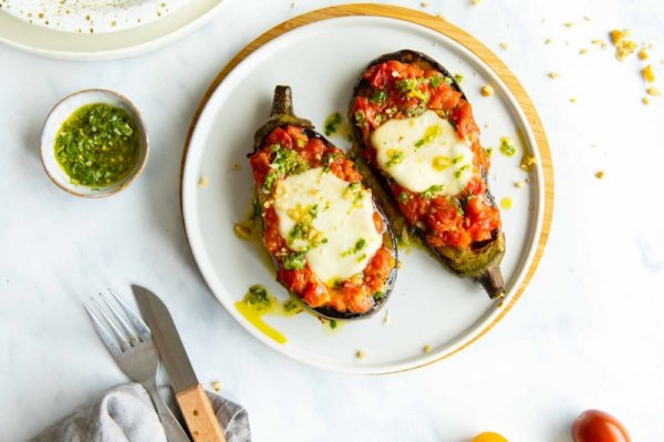 1. Cà tím nướng pho mai, món ngon ít tinh bột, ăn nhiều mà không lo tăng cân.