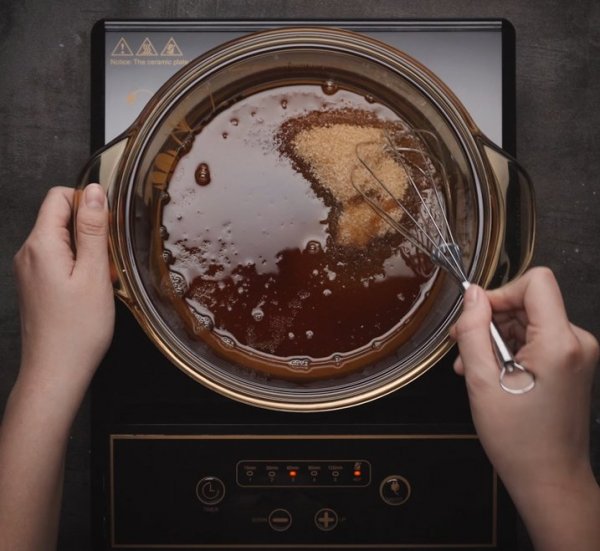- Đun cho hỗn hợp tan hết, nước mắm hơi đặc lại thì tắt bếp và để thật nguội