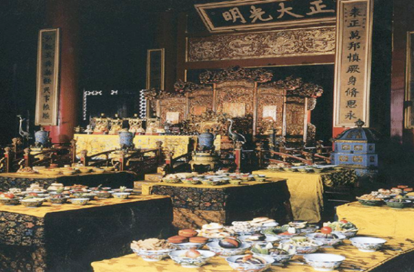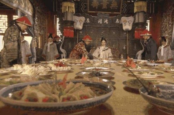 Theo đó, mỗi bữa ăn của giới hoàng tộc đều do phủ nội vụ đảm nhận. Những người hầu cũng đều được tuyển chọn gắt gao, riêng gian bếp là nơi tập trung của những vị đầu bếp giỏi nhất Trung Hoa, các nguyên vật liệu đều thuộc hàng cực phẩm. Thông thường, Từ Hi Thái hậu sẽ có 2 bữa ăn chính với hơn 100 món được chế biến cầu kỳ, 2 bữa ăn nhẹ với 40 - 50 món. Theo sử sách, vị chi, Từ Hi Thái hậu sẽ tiêu hao khoảng 100 lượng bạc cho riêng nhu cầu ăn uống của bản thân mỗi ngày.
