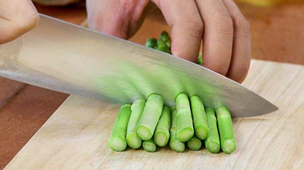- Bạn nên cắt bỏ đoạn măng tây dài tầm 5cm tính từ phần cuống lên.