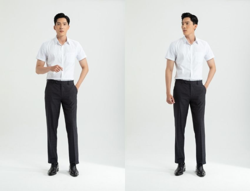 Có thể nói đây là một outfit “quốc dân” bởi nó phù hợp với nhiều loại giày khác nhau. Một đôi giày Oxford hay Derby kết hợp cùng quần tây áo sơ mi sẽ giúp quý ông thêm lịch lãm. Mix set đồ cùng giày Loafer khiến chàng trông trẻ trung, hiện đại. Khi kết hợp cùng những đôi Boots lại mang tới sự cá tính, thời trang.