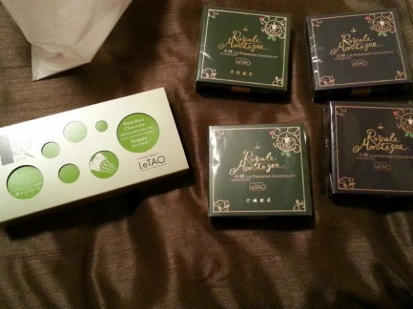 Bên trái: Socola trắng LeTao. Giữa: Socola trà xanh. Phải: Socola sữa.Giá dự kiến: JPY840 (~RM27 / SGD10) cho socola trắng, JPY630 (~RM20 / SGD7) cho socola sữa hoặc trà xanhMua ở đâu: đường Otaru Handicraft