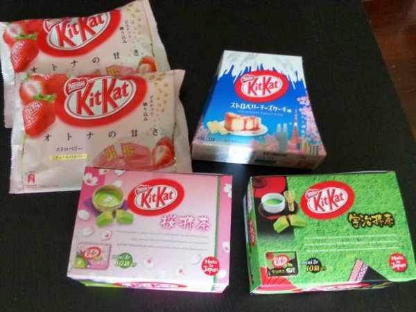Theo chiều kim đồng hồ: Kitkat dâu, Kitkat Việt Quất, Kitkat Macha Uji, Kitkat hoa anh đào.Giá dự kiến:Bánh Kitkat hoa anh đào/ uji– JPY1,575 (~RM50 / SGD19 each)Kitkat Việt Quất – JPY630 (~RM20 / SGD7)Kitkat dâu – JPY500 (~RM16 / SGD6 each)Mua ở đâu: Bạn có thể mua ở sân bay Hokkaido. (Bản thân mình thấy giá ở sân bay lại rẻ hơn). Bạn cũng có thể mua ở KL dee. Có thể bạn nên cân nhắc các vị lạ và hiếm như là Việt Quất sẽ hấp dẫn hơn đấy.