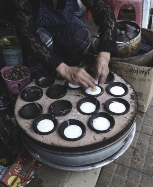 Món ăn đặc trưng của xứ sở ngàn hoa nay đã có mặt tại thành phố với hương vị chuẩn do gia đình Đà Lạt chế biến. Loại bánh đơn giản làm từ bột gạo tẻ, cho thêm trứng cút hoặc trứng vịt giúp làm tròn vị, nướng cho cháy sém để tạo mùi thơm. Bánh được úp thành từng cặp ăn cùng nước mắm chấm chua cay, trong chén có mỡ hành thơm phức.