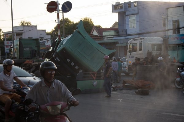 Thời tiết trong chuyến của tôi rất đẹp, cả đi lẫn về, chỉ hơi nắng vào giữa trưa còn lại thì trời trong xanh, khô ráo. Phải nói rằng đây là chuyến đi đầu tiên của tôi và miền trung đã chào đón tôi một cách không thể nào tuyệt vời hơn.Cả chuyến đi toàn ảnh đẹp rồi thôi chốt lại bài này bằng shot này cho nó ấn tượng. Trên đường về tới QL50 qua Đồng Nai gặp nguyên con xe tải bốc ngược đầu, làm kẹt xe mấy km kéo dài gần 2 tiếng. Đi về đã mệt còn kẹt nữa. Đuối quá đuối.[/i]