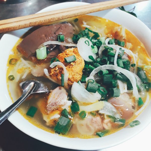 Ăn gì ở Huế?Ở Huế thì có nhiều món lắm, ngoài cơm hến, thì còn có bún bò Huế. Chúng mình tìm thấy một quán bún bò Huế Mỹ Tâm nằm trên đường Trần Cao Vân. Bún bò ở đây ăn cũng khá ngon.