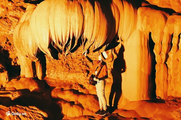 Chiêm ngưỡng vẻ đẹp của Động Ngườm NgaoRời Thác Bản Giốc và chùa Phật Tích Trúc Lâm khi cơn nắng đỡ gay gắt hơn, chúng mình tìm tới Động Ngườm Ngao ngay sau đó. Không khó để tìm đến con động này đâu, sau khi ra khỏi Thác, bạn đi theo đường DT206. Sẽ có biển báo chỉ dẫn đường vào Ngườm Ngao. Bạn có thể đi trước hoặc đi sau đều được, nhưng nên đi Thác rồi về đi Động hơn.Từ Thác đến Động khá gần, khoảng 3km và chỉ mất khoảng 7 phút đi xe, vậy thì chẳng có lý do gì để bạn bỏ qua điểm này phải không. Vé vào tham quan Động là 40.000/người.
