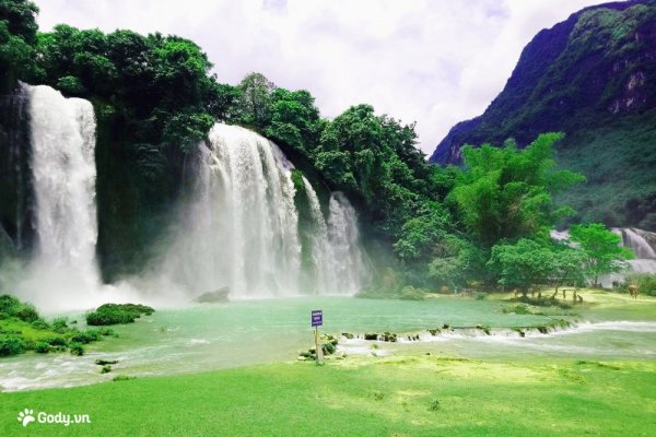 Có người nói tháng 6 chưa phải mùa nước, thác này chắc sẽ không được đẹp. Ấy thế mà từ trên đường Quốc lộ, ngó đầu xuống phía xa, mình đã thấy thác Bản Giốc đổ như một dải lụa, ào ào, xối xả, tung bọt trắng xóa.Thác nước này có độ cao 30m với nhiều khối nước lớn đổ xuống qua nhiều tầng đá vôi, được cho là thác nước hùng vĩ và đẹp nhất Việt Nam.