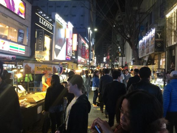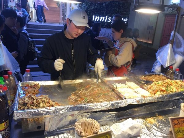 3:00 AM (giờ VN) team mình 7 người bắt đầu bay từ HCM và đáp sân bay Incheon lúc 10:00 AM (giờ Hàn Quốc). Việc nhập cảnh khá dễ dàng nếu bạn đi du lịch. Cả bọn mua vé tàu nhanh (AREX Epress train) ở Tầng B1 di chuyển một lèo về Seoul, giá khoảng 8k won, nhân viên bán vé nói tiếng anh nên cũng đơn giản.Seoul StationBước qua bậc thang cuối cùng cổng ra Soul Station, mình đã cảm giác được cái lạnh 10 độ C chà sát vào da mặt, khá đã. Độ sướng càng tăng khi phát hiện thời tiết rất đẹp, cái cảm giác vừa đón ánh nắng chiếu vào hòa với nhiệt độ se lạnh làm mình chỉ muốn nhảy cỡn lên =)) Và các bạn à, hình ảnh Seoul trước mắt mình không khác gì so với lúc lên phim cả. Một góc Seoul Một góc SeoulÀ xíu nữa quên, để làm chủ việc di chuyển ở Seoul các bạn nên down trước app KakaoMetro Subway (sơ đồ line tàu điện ở Seoul) và Mapsme (bản đồ offline), load sẵn map Korean. MapsMe giúp mình rất nhiều vì trên app định vị chi tiết từng station và gate. Ở mỗi station đều có máy tự động bán/nạp tiền thẻ T Money dùng để đi subway, bus... Trung bình mỗi ngày mình tốn 4 - 5k won cho việc di chuyển, ngoài ra mình đi bộ khá nhiều khoảng 12km/ngày. Wifi bên này mạnh và phủ hầu như toàn thành phố nên không mua sim data tuy nhiên mình có check giá ở sân bay khoảng 450k VND xài tẹt ga trong 1 tuần. Khách sạn cho check in lúc 2:00 PM nên bọn mình gửi hành lý trước rồi đi ăn. Mình quất ngay 1 phần cơm trộn Hàng xẻng :DCơm trộn Hàn Quốc chính hiệuBảng giá các món ăn tại quán Ngon cực luôn!! chắc do bụng đói nên càng thấy ngon. À quay lại haha, ấn tượng đầu tiên là quán rất sách sẽ. Đũa, muỗng và ly uống nước đều được khử trùng sáng bóng. Trong khẩu phần ăn của người Hàn lúc nào cũng có các món kèm theo như kim chi, đồ chua, đậu....Giá thấp nhất trung bình cho một món/khẩu phần ăn ở Hàn Quốc là 6k - 7k won (140k VND). Chất lượng đi đôi với giá, mình xúc muỗng nào ngoặm hết muỗng đó :DKim chi, rong biển, đồ chua kèm theo món ăn chínhĐánh chén no nê, bọn mình check in khách sạn nghỉ ngơi. Sau đó cũng khá trễ nên mình quyết định đi thăm làng BukChon Hanok (subway trạm Aguk - line 3) rồi chi chuyển qua phố đi bộ Insadong.BukChon Hanok VillageBukChon Hanok VillageTrên đường có gặp một bác bán Tteokbokki và chả cá cực ngon luôn, trời lạnh mà húp 1 chén nước súp nóng trên cả tuyệt vời! Giá chỉ 750 won 1 xiêng chả cáStreet food - TteokbokkiStreet food - Mình và chị gáiVà rồi chiến dịch ăn đêm bắt đầu. Từ phố đi bộ Insadong, mình di chuyển đến chợ Myeongdong. Myeongdong vừa là khu phố mua sắm, vừa là thánh địa ăn uống nằm giữa lòng Seoul. Con đường này tập trung nhiều cửa hàng thời trang, mỹ phẩm như Chanel, Zara, The Face Shop, Innisfree,...., dọc theo đó là các quầy street food trải dài.MyeongdongGiá mỗi món khoảng 3000k won, mình thấy rất chát nhưng thôi chơi luôn haha =))Street food - Thịt heo nướng (anh này người Việt Nam luôn)Street food - Mì xào thập cẩm Street food - Bánh bông lan trứngNhiệt độ giảm dần khi về đêm nhưng khu chợ vẫn tấp nập, bọn mình không quên mua một đống đồ ăn trước khi về khách sạn để chúc mừng sinh nhật 1 bạn trong squad :)Ngày 2