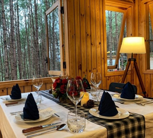 Còn nếu yêu thích sự lãng mạn, hẹn hò ấm cúng nhưng vẫn ngắm được cảnh rừng thông thì bạn có thể chọn vị trí ngồi trong nhà nhìn ra khung cửa kính.