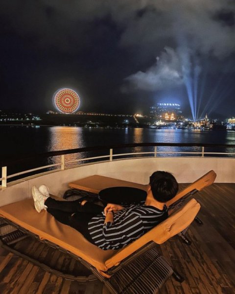 Nếu bạn là người thích thư giãn nhẹ nhàng thì hãy ngồi hóng mát, chiêm ngưỡng cảnh sắc về đêm đẹp lung linh trên du thuyền Sealife Legend. Thuyền sẽ chạy quanh trước Quảng Trường và neo lại ở Vinpearl, tại đây du khách có thể ngắm trọn đảo Hòn Tre lên đèn gần trong gang tấc.
