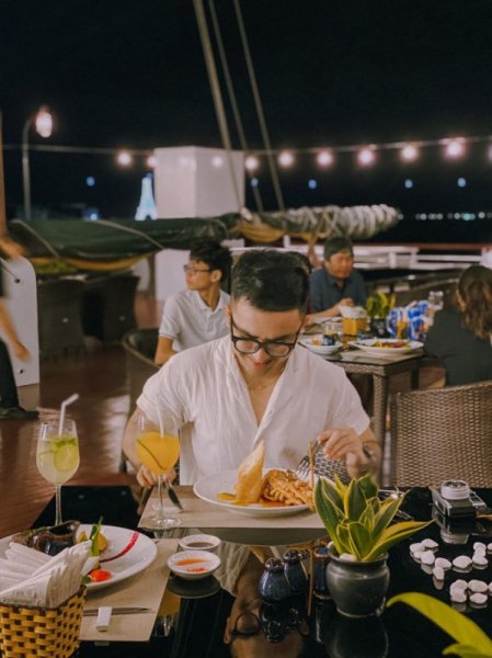Sau khi ăn uống thỏa thích, bạn có thể tham gia những hoạt động vui chơi được tổ chức trên du thuyền như thưởng thức âm nhạc, karaoke sôi động hay thư giãn với dịch vụ massage. Lưu ý, du thuyền có phụ thu đối với dịch vụ massage.