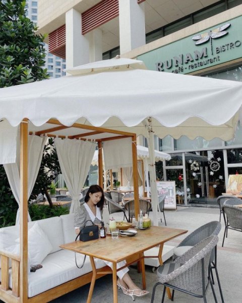 Runam Bistro Nha Trang cũng mang phong cách sang trọng, tinh tế thường thấy. Tuy vậy, để cửa hàng phù hợp với không khí của một thành phố biển hơn thì đã có một chút nhấn nhá trong nội thất, chẳng hạn như quầy bar đậm chất nhiệt đới va những chú hạc giấy phóng khoáng, tự do.