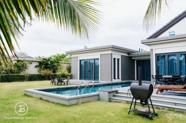 Villa bao gồm: 3 phòng ngủ, 1 phòng cho tài xế, hồ bơi ngoài trời, BBQ ngoài trời, có bảo vệ 24/7, dàn karaoke loa trong nhà và ngoài vườn, cần câu cá, miễn phí chơi golf tại The Bluffs Hồ Tràm.