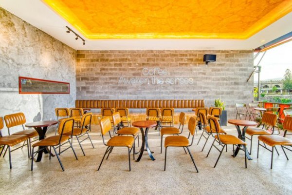 Quán được thiết kế với tone màu nâu cam chủ đạo, kết hợp với sự bày trí đơn giản đã tạo nên không gian mở vô cùng thoáng mát.