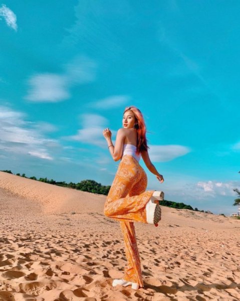 Đồi cát Mũi Né là một điểm check in đẹp nổi tiếng với những dải cát dài nhiều cây số, màu cát vàng óng ả, hòa quyện với ánh nắng vàng tạo nên khung cảnh khó quên.