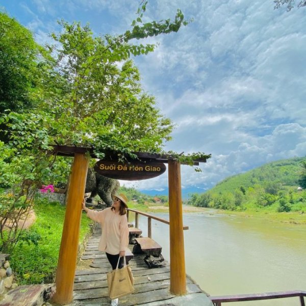 Vốn là miền núi hoang sơ, nhưng giờ đây Suối Đá Hòn Giao thu hút giới trẻ tìm đến đây bởi không gian yên tĩnh, một bầu không khí trong lành. Nơi đây trông như một bức tranh kỳ vĩ của thiên nhiên. Núi rừng, sông nước đan xen nét đẹp mộc mạc của những người dân tộc thiểu số.