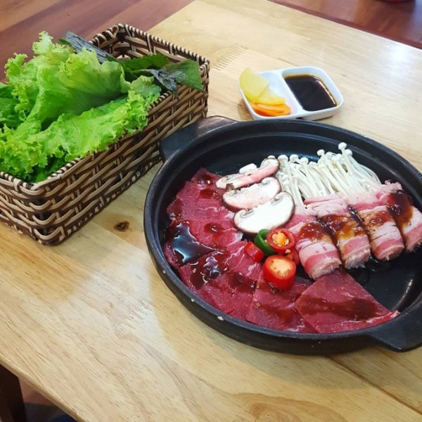 Tại đây, bạn sẽ được thưởng thức các món ăn truyền thống Hàn Quốc như canh kim chi, mì lạnh kim chi và đặc biệt phải kể đến là thịt ba chỉ và thịt bò nướng. Món thịt heo chiên xù giòn rụm cùng sốt chua ngọt cũng vô cùng ngon miệng.