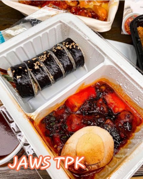 Jaws TPK: Có combo tokbokki và kimbap một người ăn, chỉ 55 nghìn. Cơm dẻo, nhân đầy cuộn chắc tay, thương hiệu gốc Hàn qua nên vị không biến tấu nhiều;