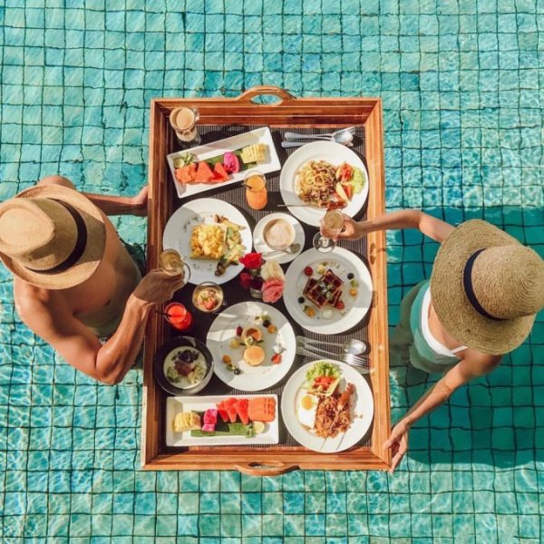 "Bữa sáng nổi" (floating breakfast) là hình thức dùng bữa trong một chiếc khay/rổ mây/gỗ được thả nổi trong bể bơi, bồn tắm nước nóng tại những khu nghỉ dưỡng sang trọng. Theo CNN, trào lưu này từng nở rộ khoảng 5 năm trước và có xu hướng được quan tâm trở lại. Có thể nói, yếu tố khiến bữa sáng nổi trở thành một trong những hiện tượng mạng là vì sự bắt mắt, trông có vẻ xa hoa và đáng ao ước của nó khi xuất hiện trên ảnh.