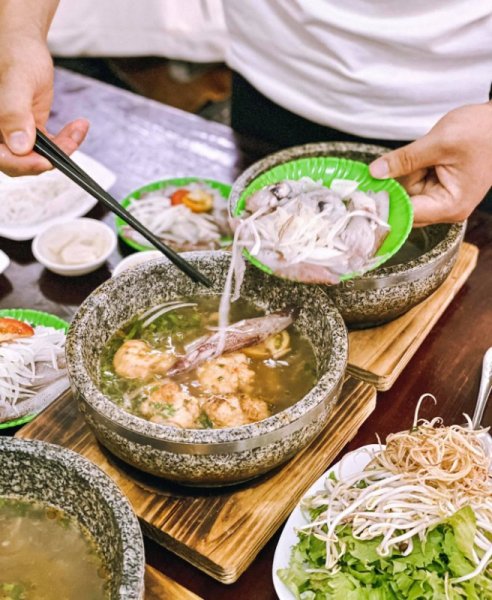 Món bún chả mực Phú Yên được các bạn trẻ chọn làm món ăn sáng và cả bữa ăn tối cùng gia đình hay bạn bè. Món bún được quán bày trí trong thố đá nóng hổi vừa đẹp mắt vừa giúp giữ nhiệt nước dùng được lâu hơn.