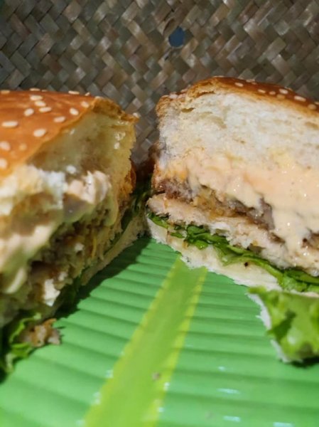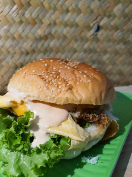 Một phần hamburger chất lượng tại Trâu Hamburger.