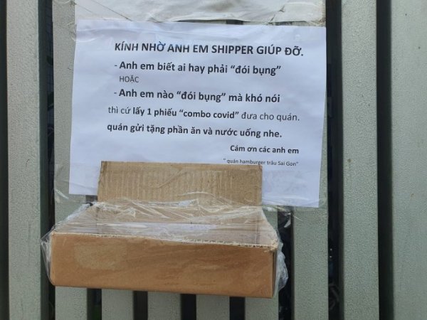 Những phiếu quà tặng hamburger miễn phí này được trao cho các shipper đến nhận giao đồ ăn, hoặc cho những người dân xung quanh. Nếu các shipper biết người hoàn cảnh khó khăn, cần đến combo Covid này, họ có thể nhận thay và trao lại phần ăn cho người đó.